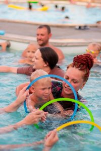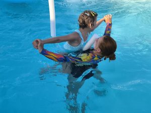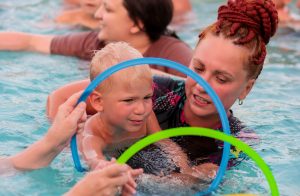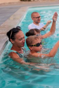 Гидрореабилитация на нашем интенсиве оказалась настоящей изюминкой программы! Специалист по гидрореабилитации проводил занятия в соответствии с индивидуальной программой каждого ребенка. При разработке карты занятий учитывались результаты нейропсихологической и логопедической диагностики, а также особенности каждого ребенка. В зависимости от диагноза и возраста детей подбирались специальные комплексы процедур: первая часть занятия проходила на берегу бассейна в форме АФК, а вторая — непосредственно в термальной воде.