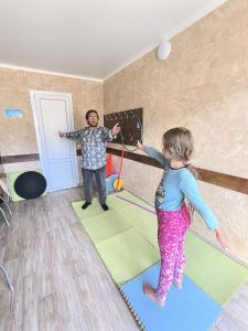 Занятия проходили в удобных, специально оборудованных кабинетах. Центр оснастил кабинеты материалами и специальными тренажерами. Плюс мы привезли целый комплекс РКШ для всех возрастов наших детей. Для некоторых ребят добавили упражнения по программе Русской Классической Школы, что особенно полезно для возраста 4–6 лет. Нам удавалось проводить даже сдвоенные занятия, и это дало отличный результат!