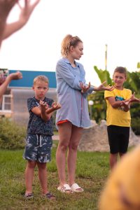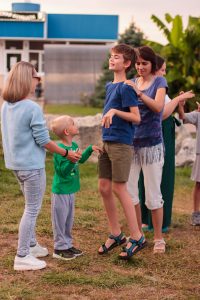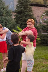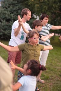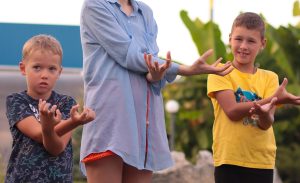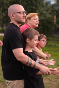 На нашем интенсиве царила невероятная атмосфера! Каждое утро и вечер (два раза в день) собиралась на обязательные занятия вся группа (дети и родители), чтобы погрузиться совместную групповую работу, обучение и коммуникации на базе блоков задач и упражнений с тренажерами и творческими мастер-классами, которые вели все шесть профессионалов Интенсива. На первом занятии в 8:15 утра проводилась активация всей группы и каждого ребенка по отдельности, вовлечение детей, мотивирование на работу в течение предстоящего дня. В 18:15 вечера проводили креативные занятия с заданиями и упражнениями на закрепление материала, на применение полученных детьми в течение дня навыков, на общение, коммуникацию и расслабление. Все дети всех возрастов самым активным образом работали в мини-группах и в больших группах, по задачам и по возрастам и потребностям каждого ребенка.